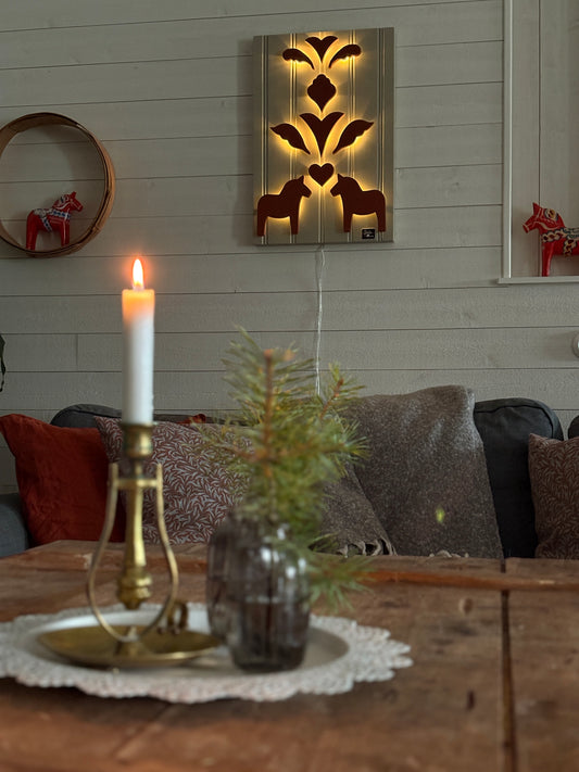Produktserie: Dala-Järna Kurbits - Tavla med dalahästar och belysning