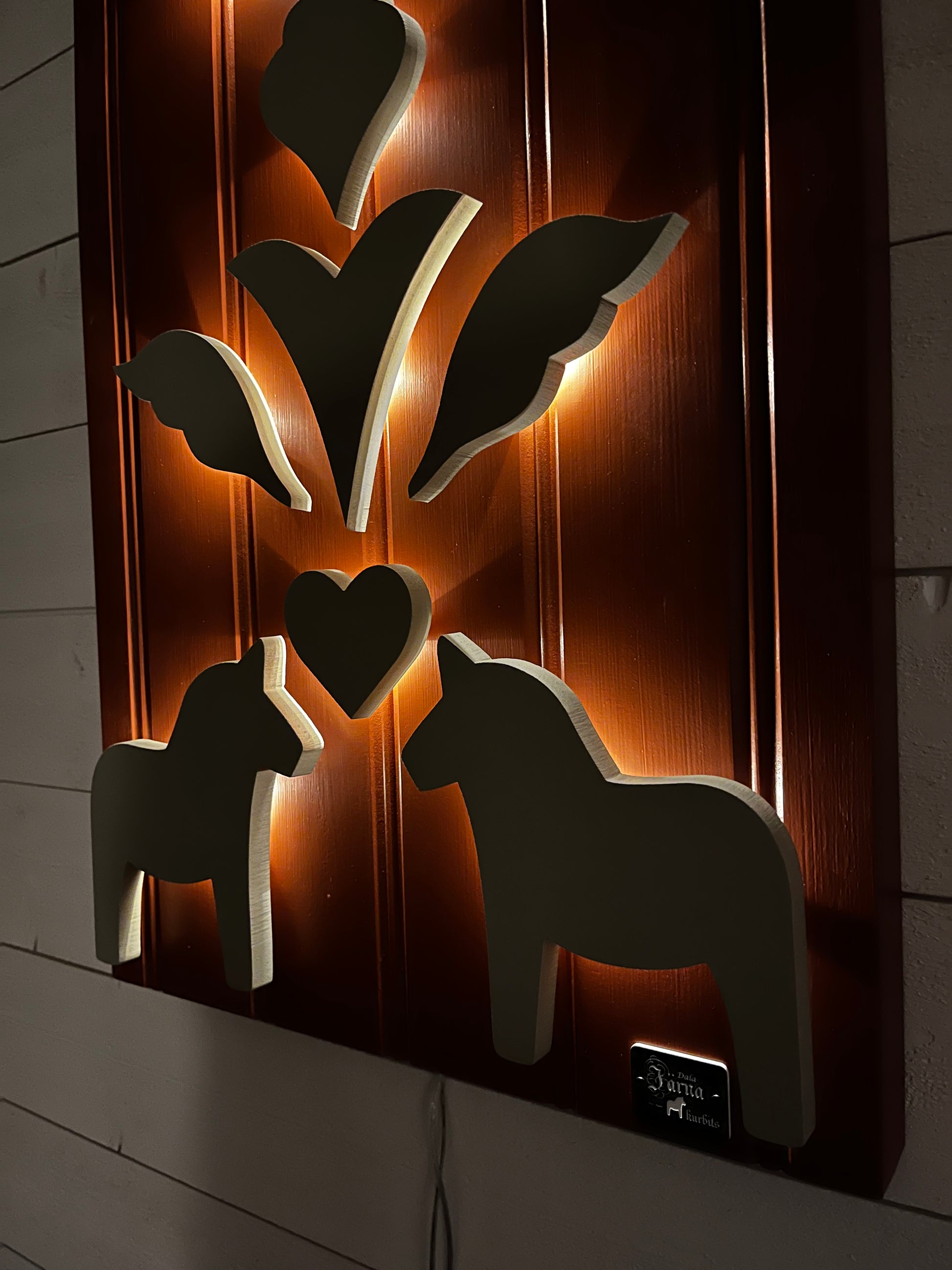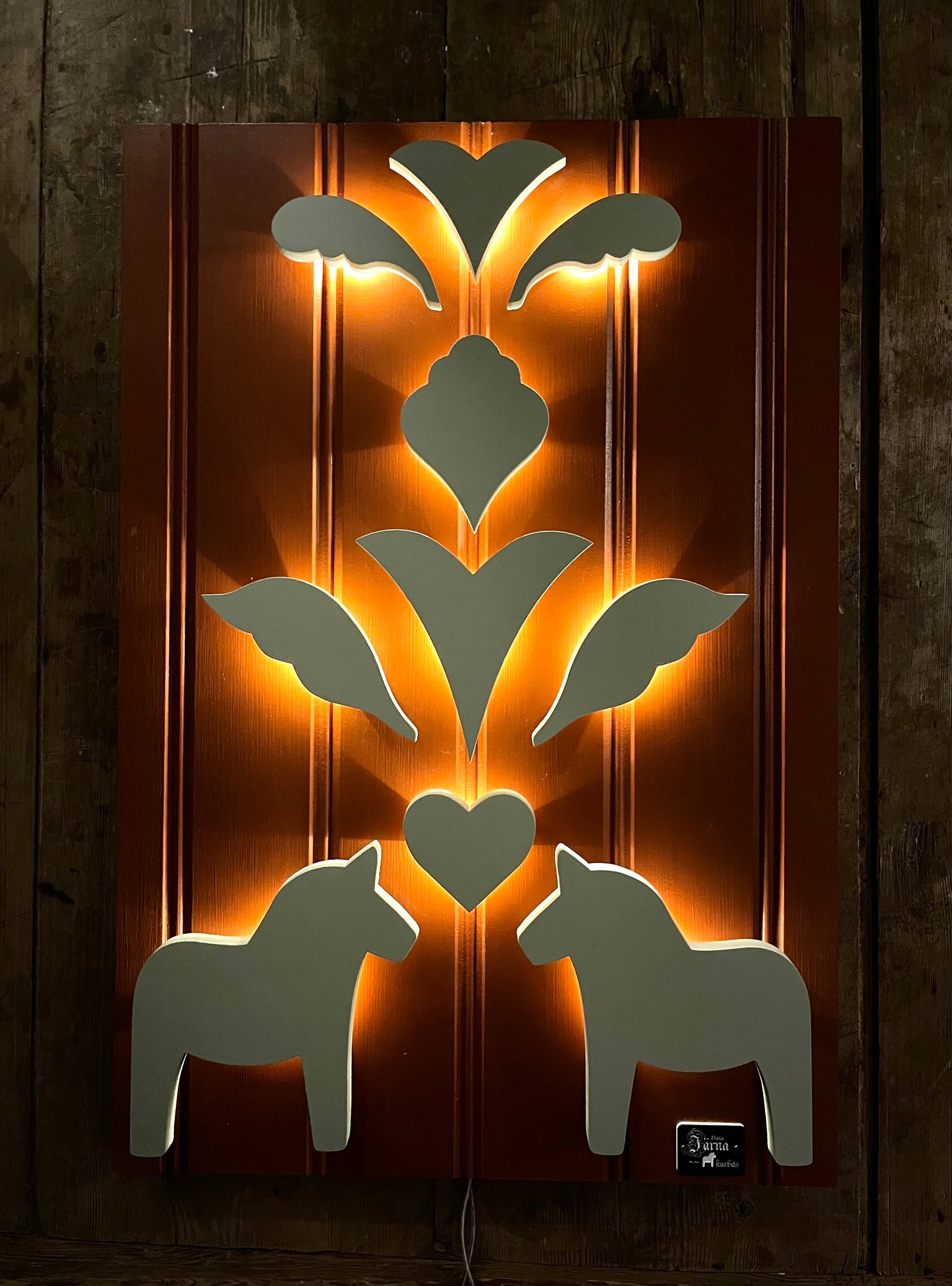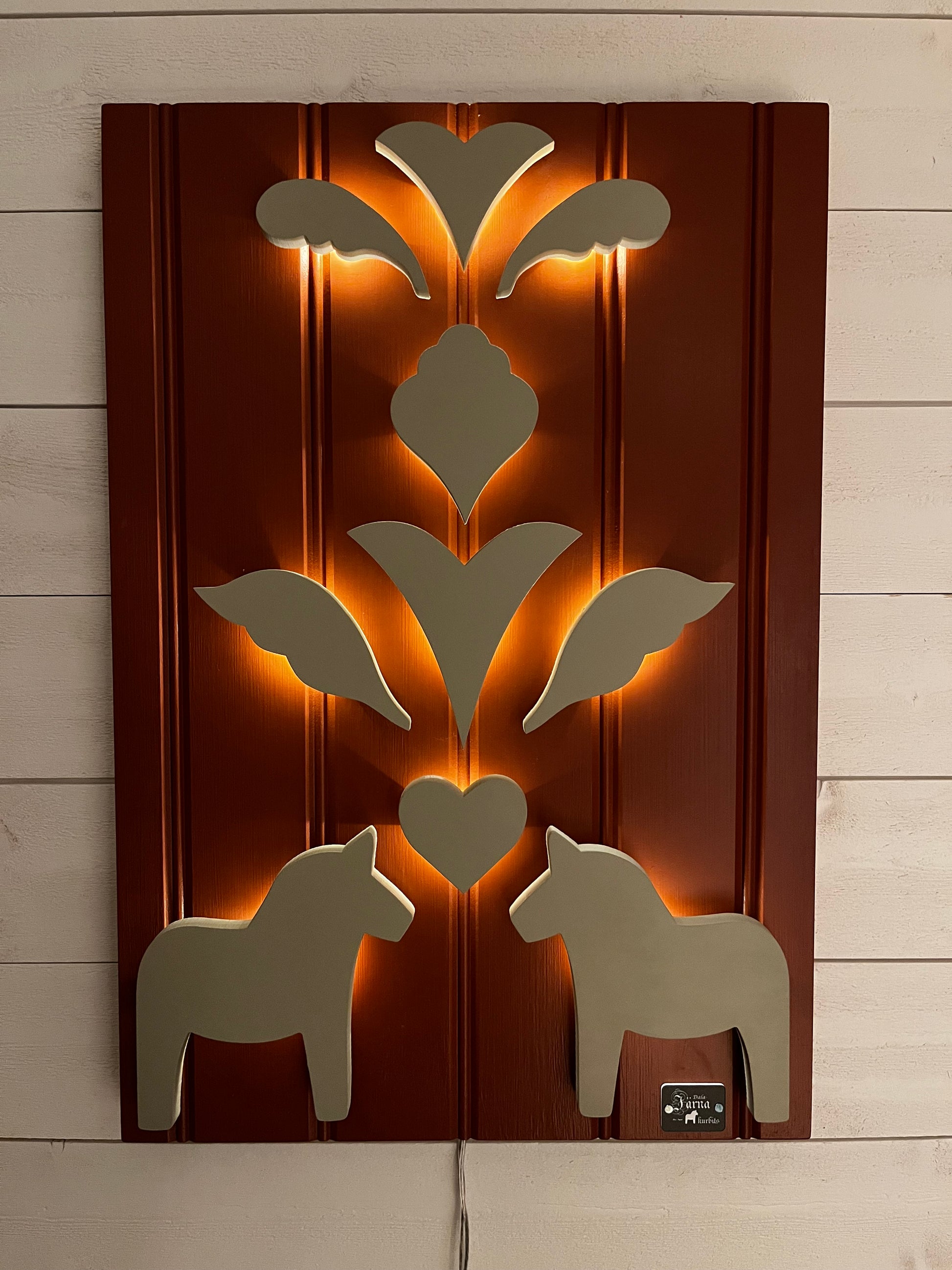 Denna dekorativa tavla är en perfekt present till någon som uppskattar skandinavisk design eller vill addera en genuin känsla av Dalarna till sitt hem.