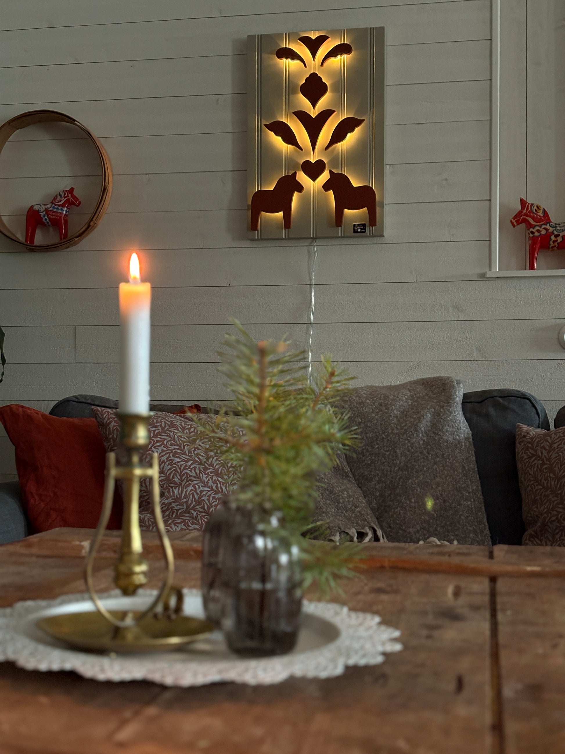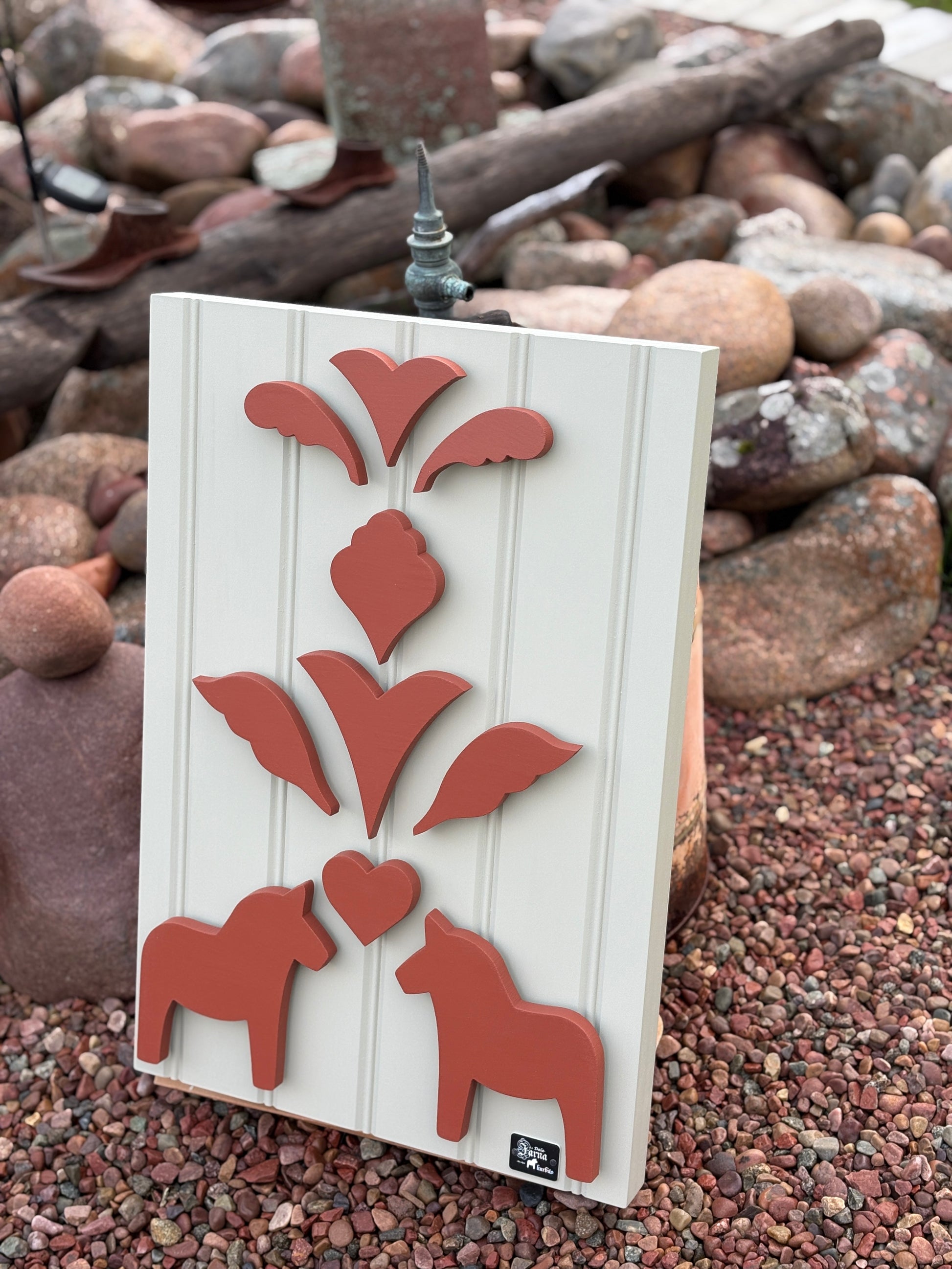 Denna dekorativa tavla är en perfekt present till någon som uppskattar skandinavisk design eller vill addera en genuin känsla av Dalarna till sitt hem.